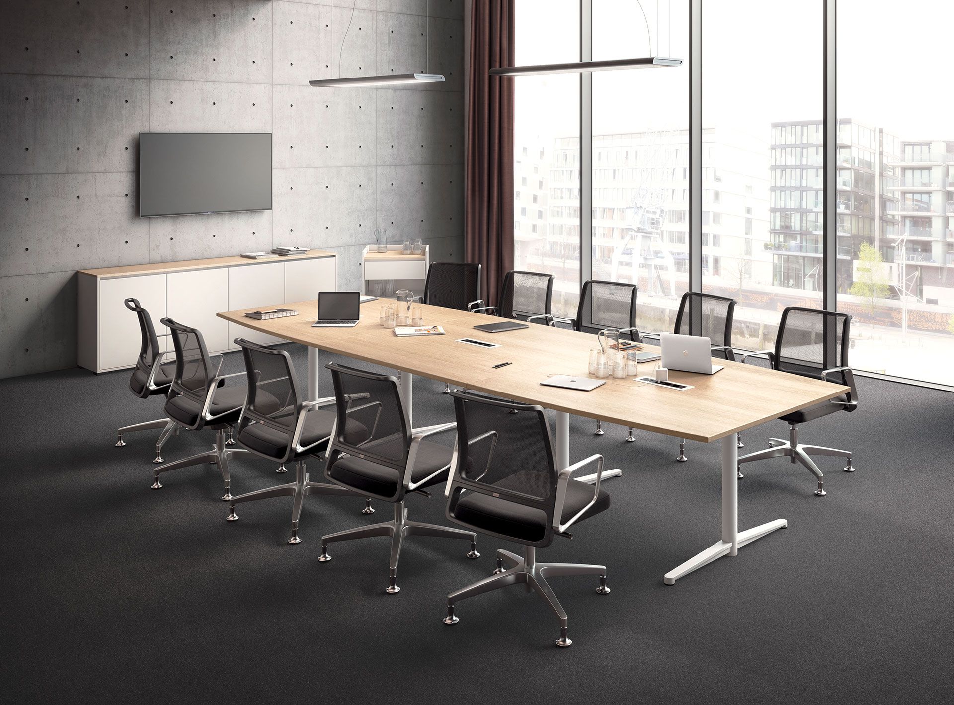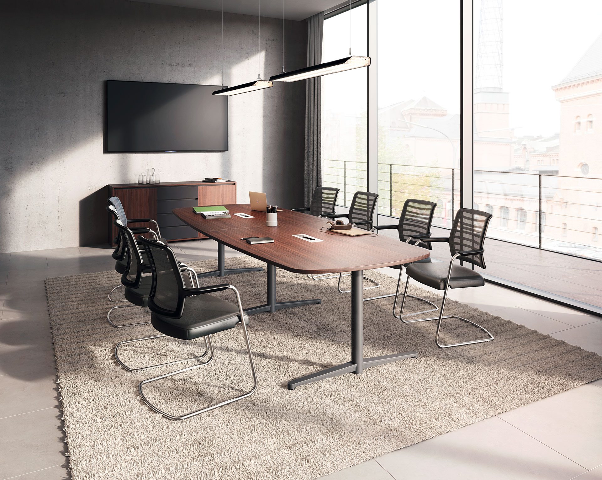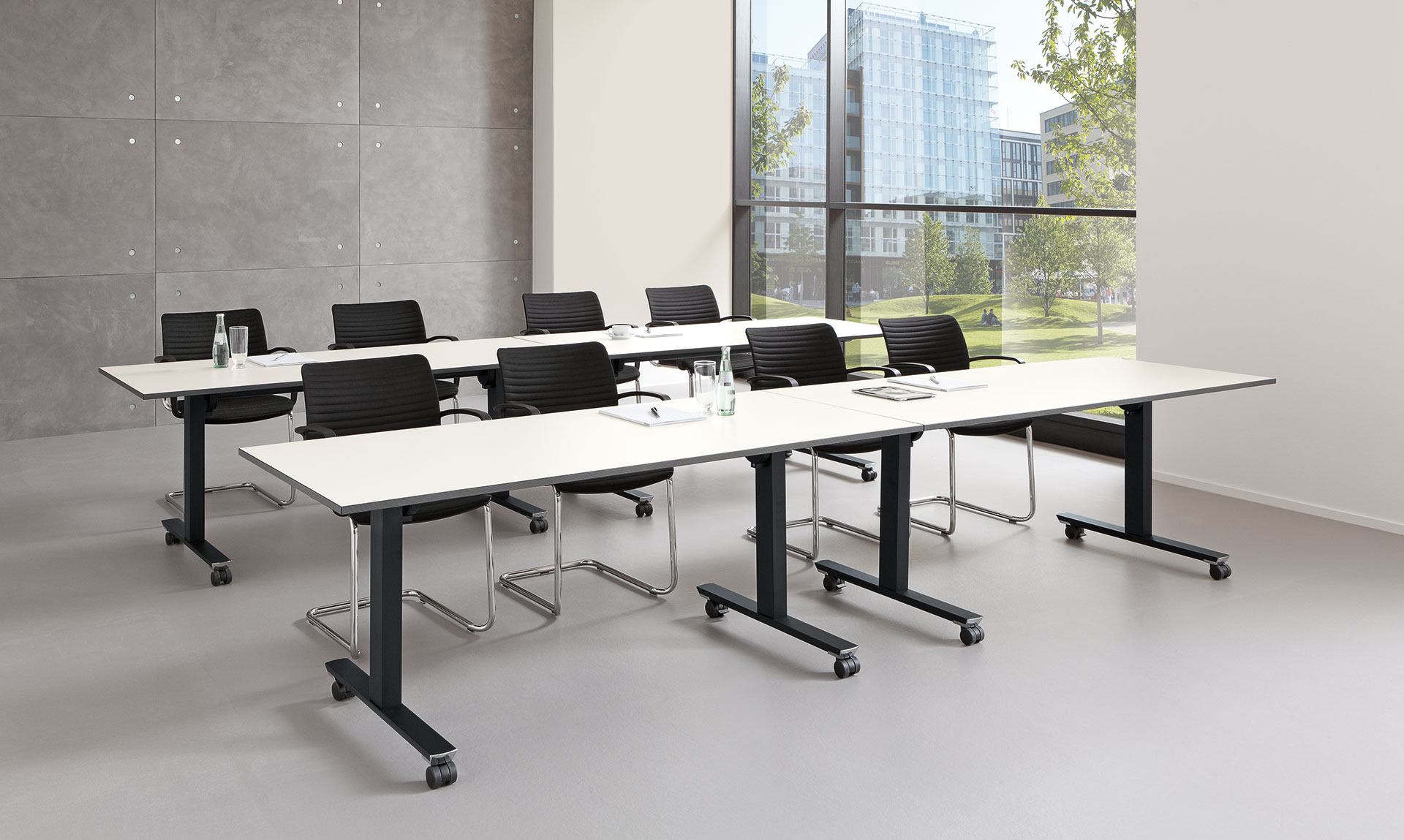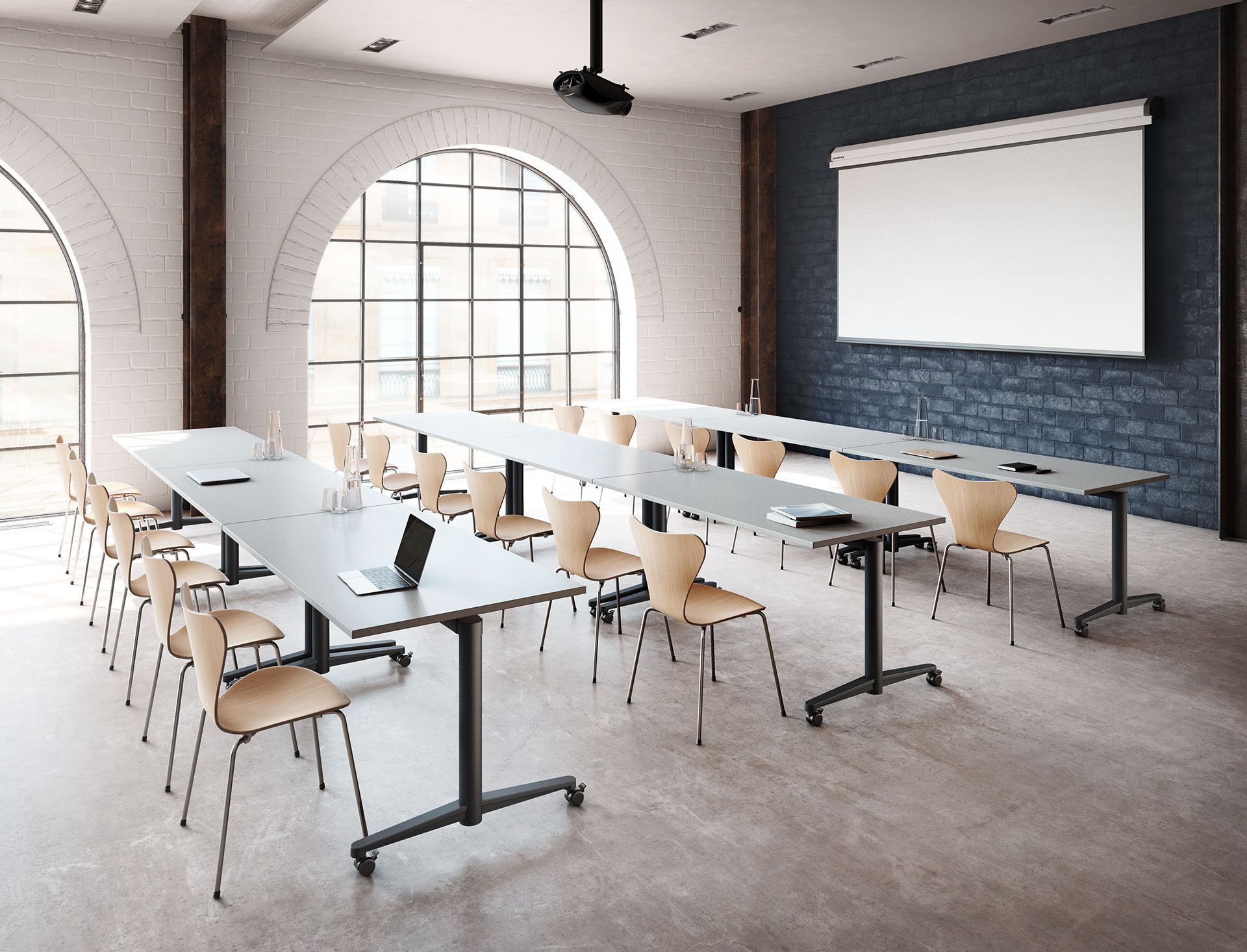 Binnen de Conferentie-lijn zijn de mogelijkheden vrijwel eindeloos. Kies bijvoorbeeld voor een stijlvolle T-poot vergadertafel, een stabiele 4-poots uitvoering, een elegante tafel op kolomvoeten of een praktische verrijdbare klaptafel voor maximale flexibiliteit. Zo richt je iedere ruimte precies in zoals jij dat wilt – van vaste vergaderruimtes tot multifunctionele zalen.