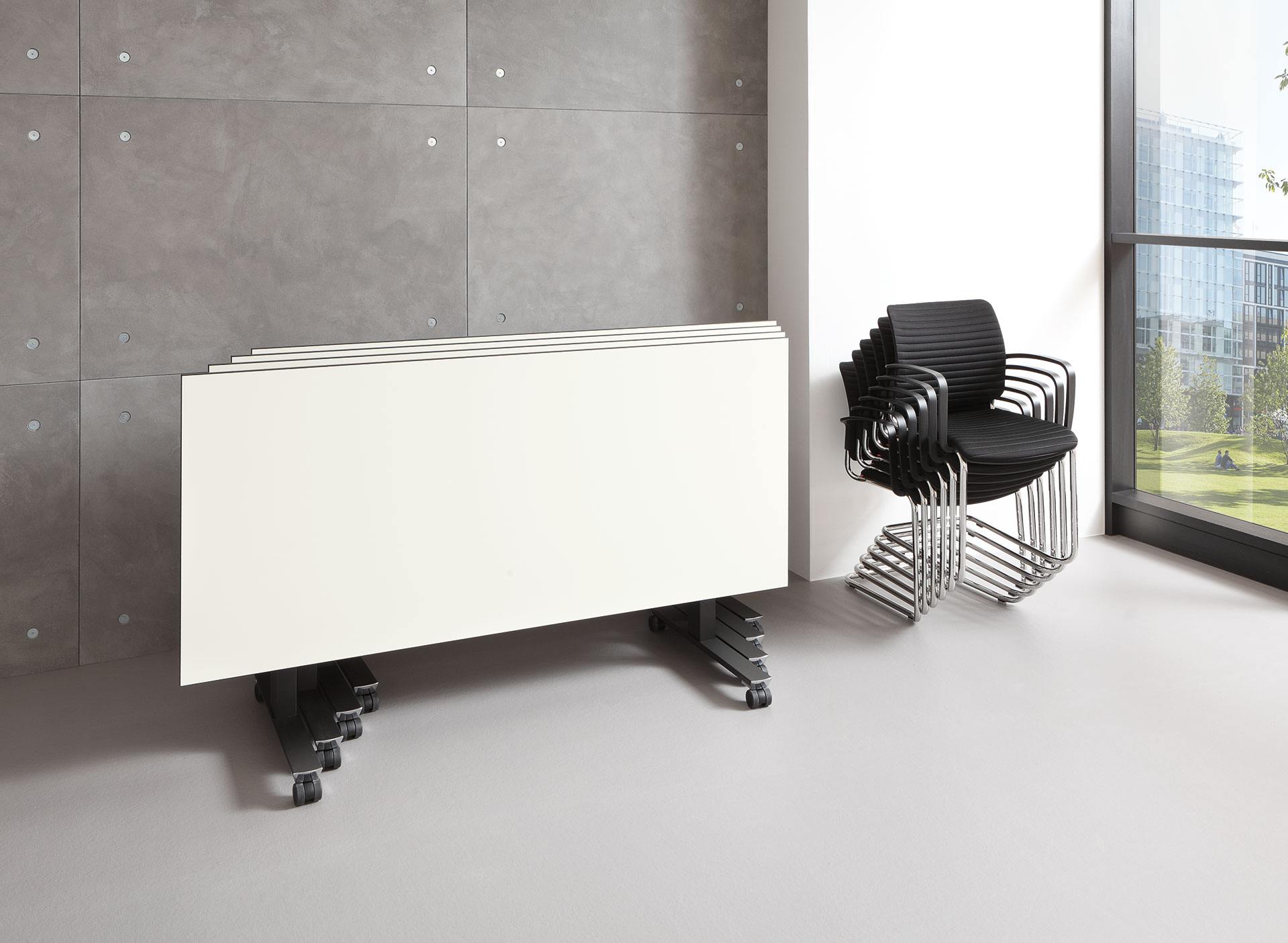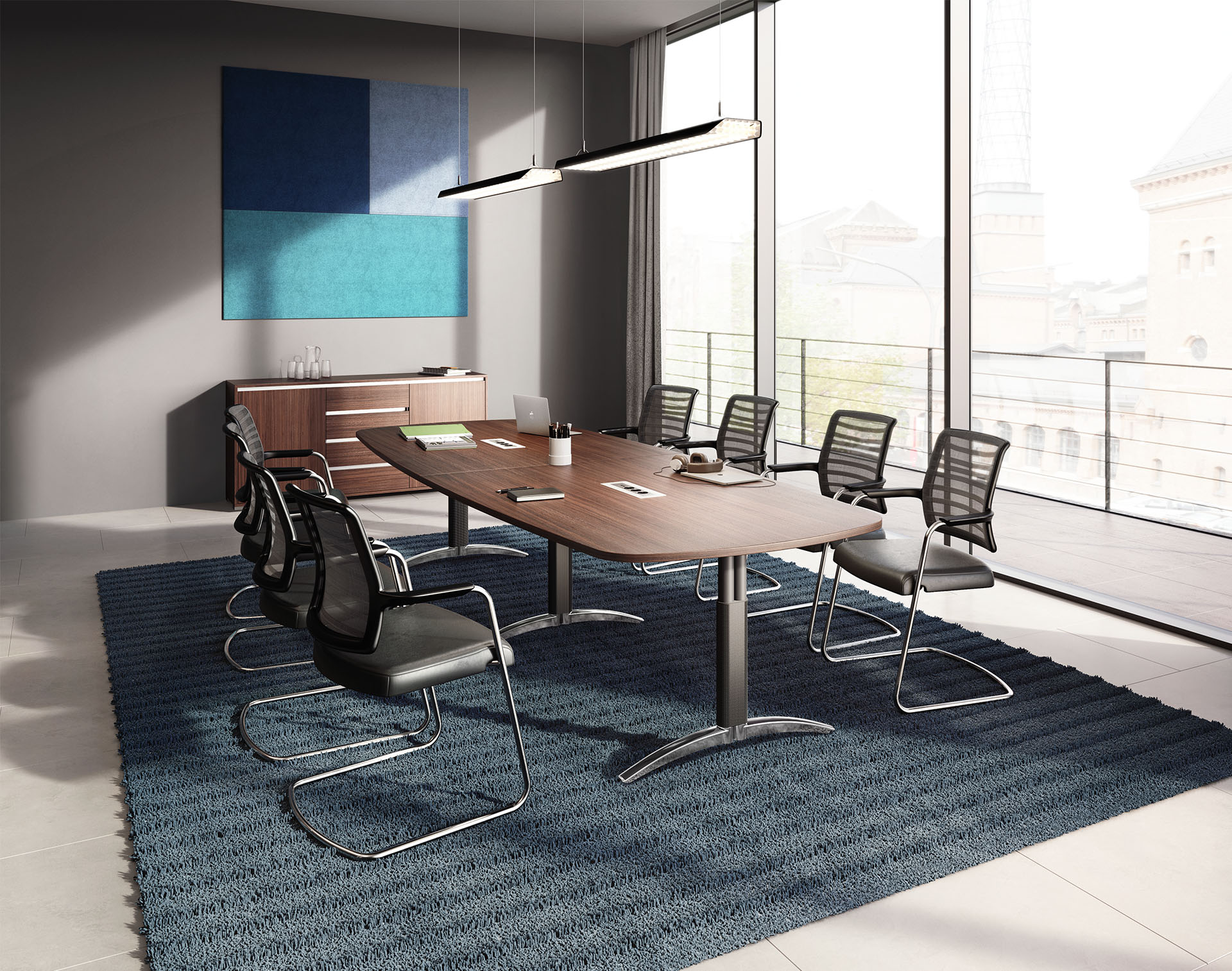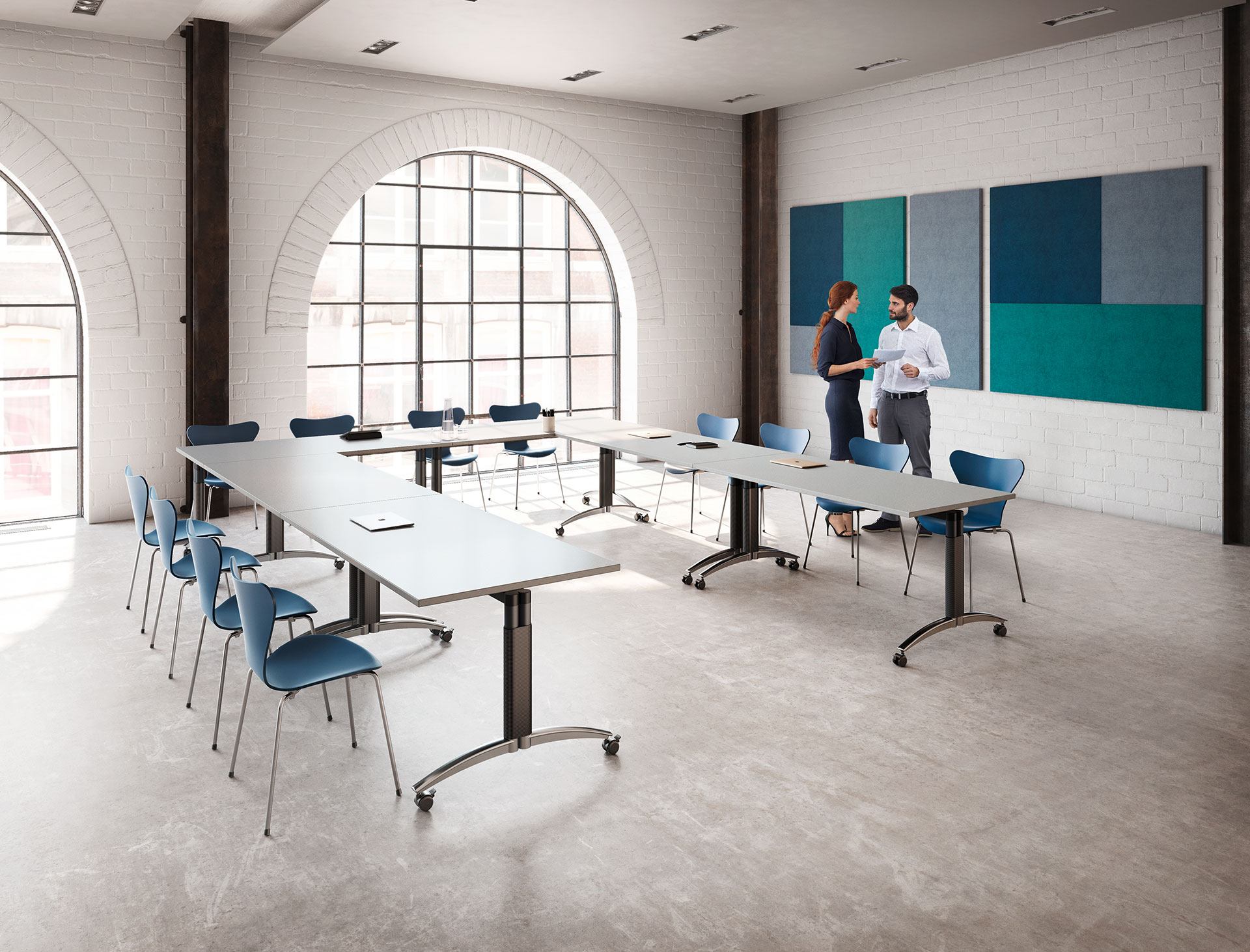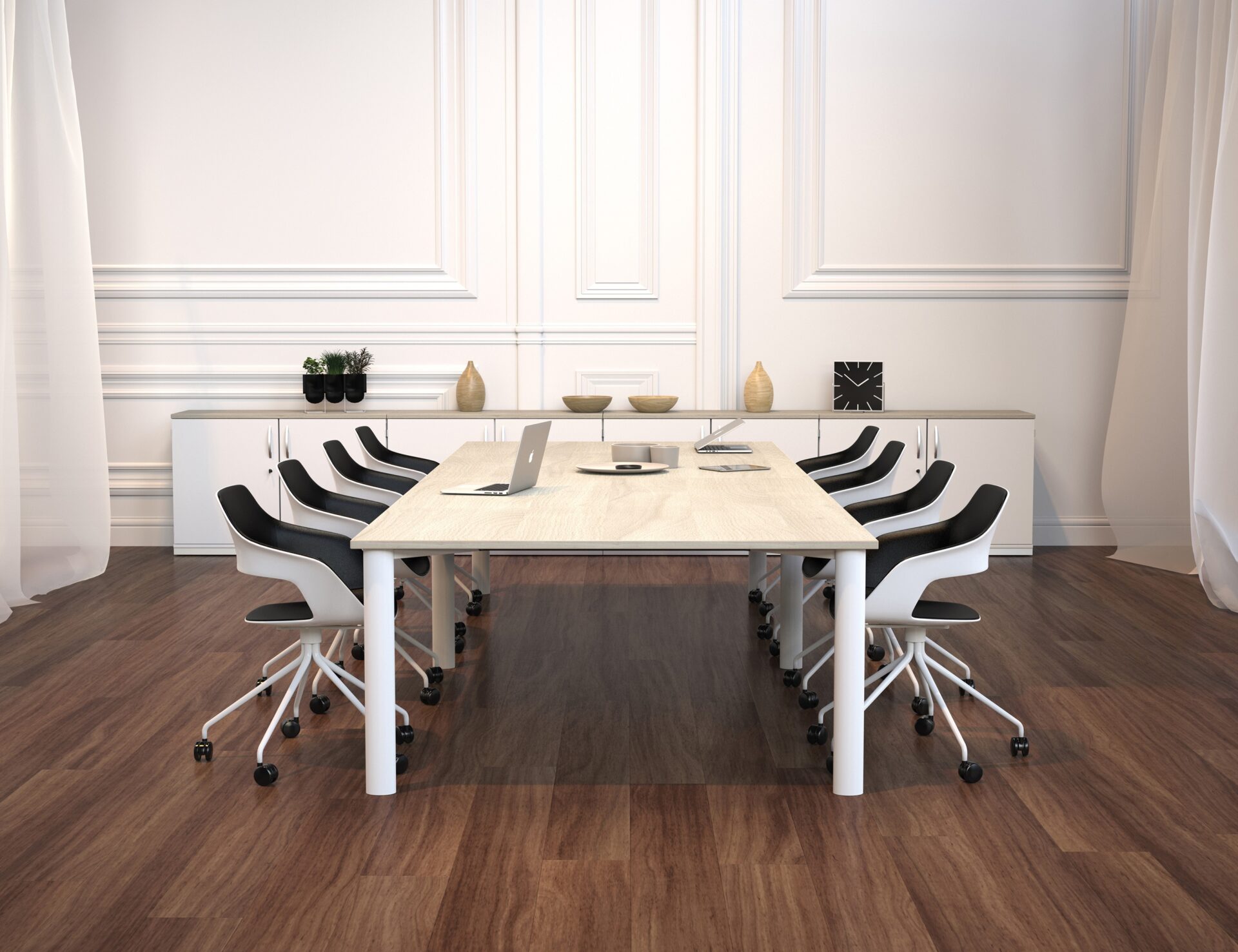 Binnen de Conferentie-lijn zijn de mogelijkheden vrijwel eindeloos. Kies bijvoorbeeld voor een stijlvolle T-poot vergadertafel, een stabiele 4-poots uitvoering, een elegante tafel op kolomvoeten of een praktische verrijdbare klaptafel voor maximale flexibiliteit. Zo richt je iedere ruimte precies in zoals jij dat wilt – van vaste vergaderruimtes tot multifunctionele zalen.