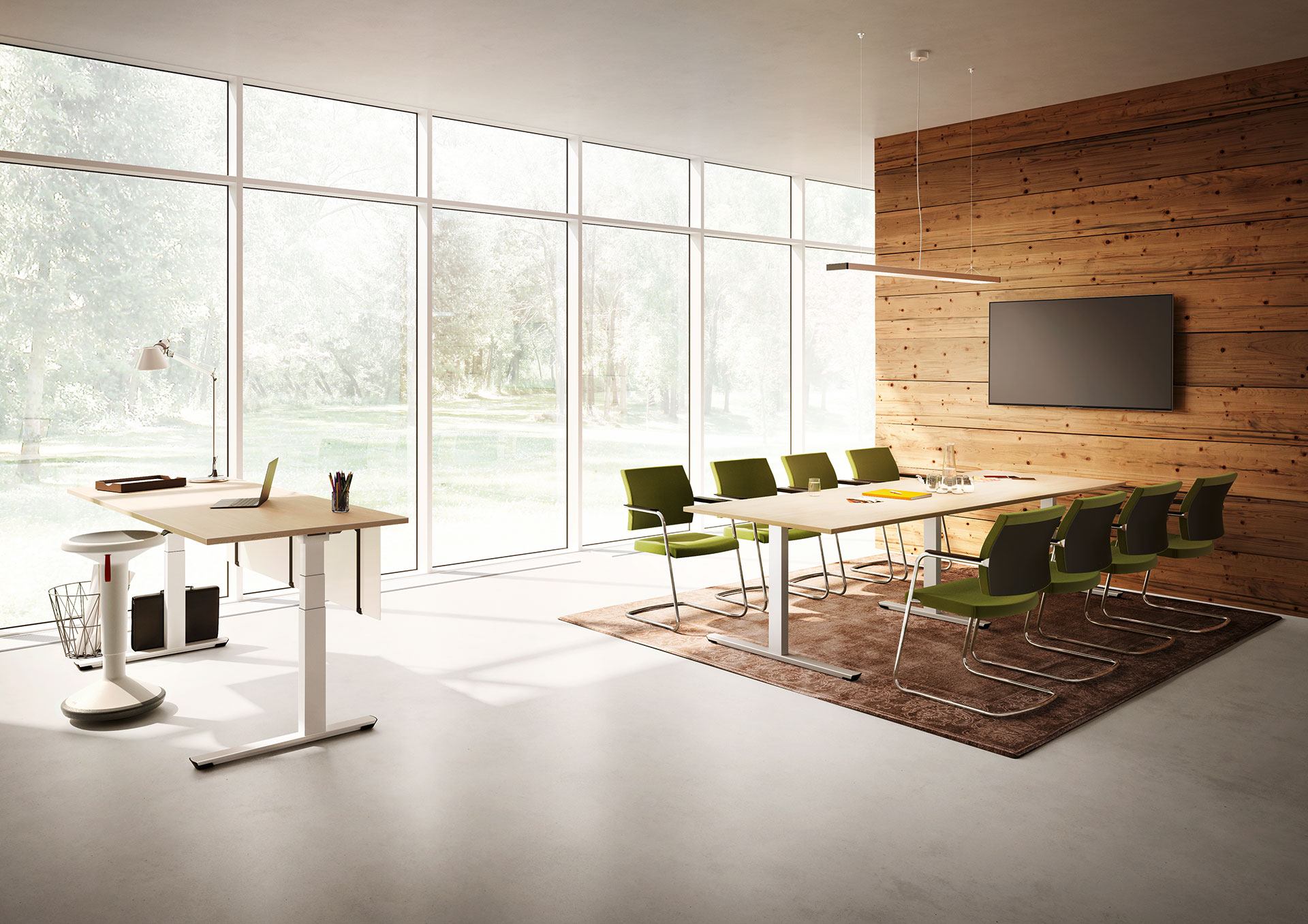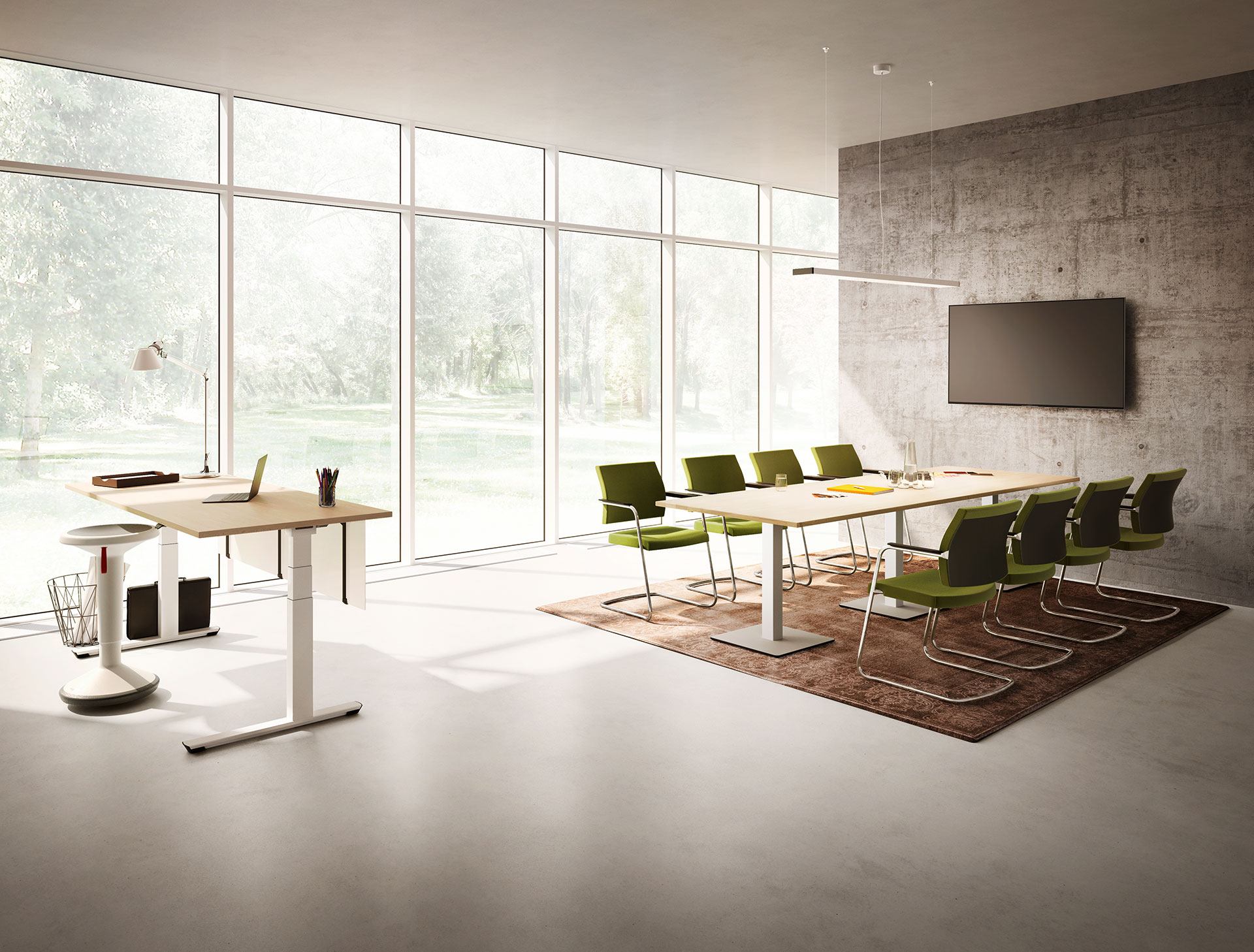 Voor wie dynamisch en efficiënt wil werken, biedt Palmberg ook elektrisch in hoogte verstelbare vergadertafels. Hiermee wissel je eenvoudig tussen zittend en staand vergaderen. Daarnaast zijn er vaste sta-vergadertafels beschikbaar, ideaal voor korte en doelgerichte overleggen. Uit onderzoek blijkt dat staand vergaderen tot wel 30% tijd kan besparen, doordat meetings korter, energieker en effectiever verlopen.
