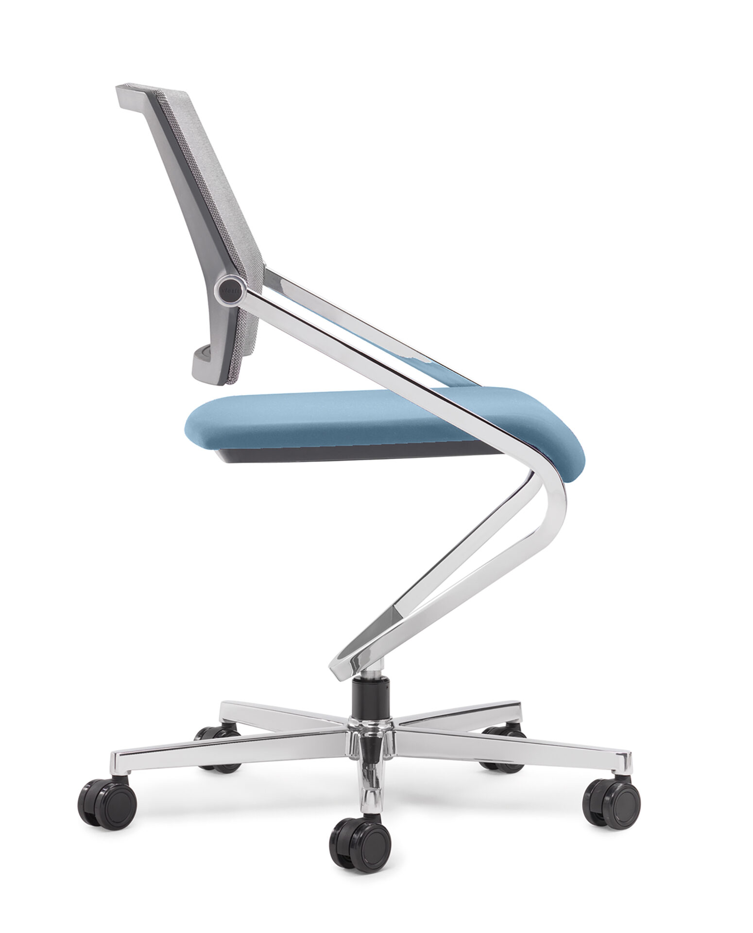 De Viasit Scope vergaderstoel biedt maximale flexibiliteit en is leverbaar als vierpoots uitvoering met glijders of als vijfpoots variant op wielen. Het slanke frame van rechthoekige buizen, geplaatst op de smalle kant, geeft de stoel een moderne en elegante uitstraling. De verchroomde afwerking en antracietkleurige kunststof details zorgen voor een tijdloos design dat in iedere vergaderruimte tot zijn recht komt. De armleuningen van spuitgegoten en gepolijst aluminium zijn voorzien van een zachte inlegger, wat zorgt voor extra comfort tijdens langere meetings. Afhankelijk van de uitvoering is de stoel uitgerust met een vier- of vijfteense kruisvoet in gepolijst aluminium, wat stabiliteit en mobiliteit perfect combineert.