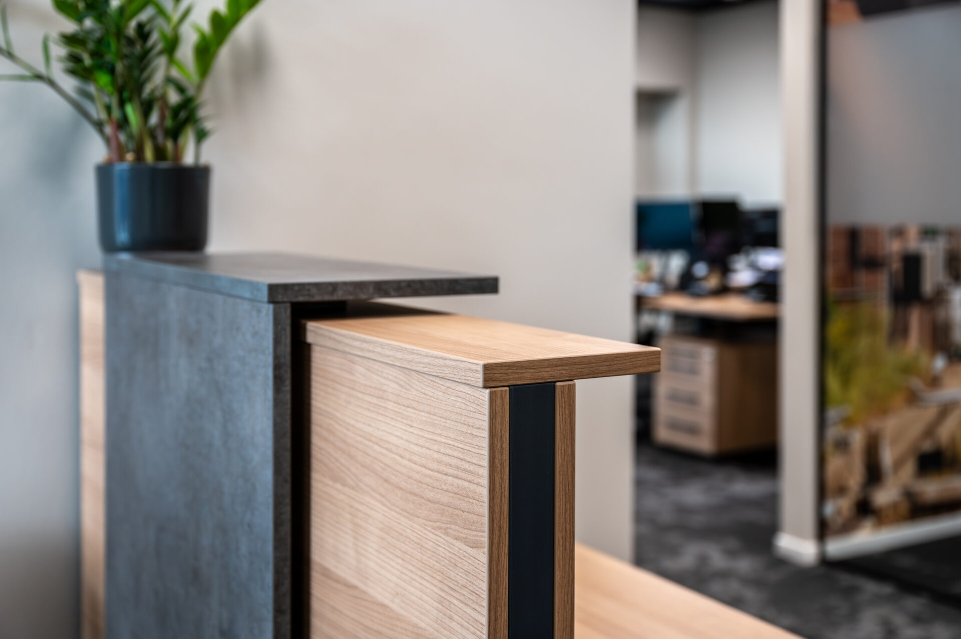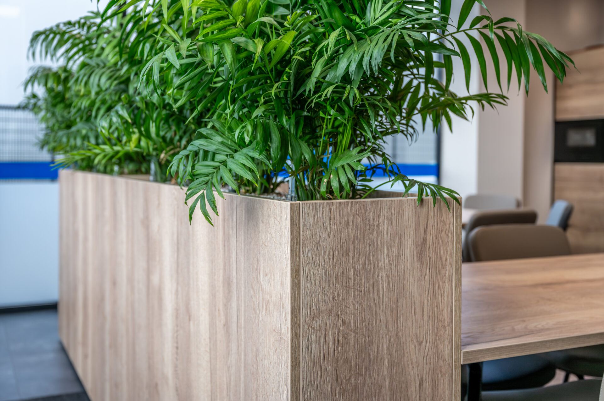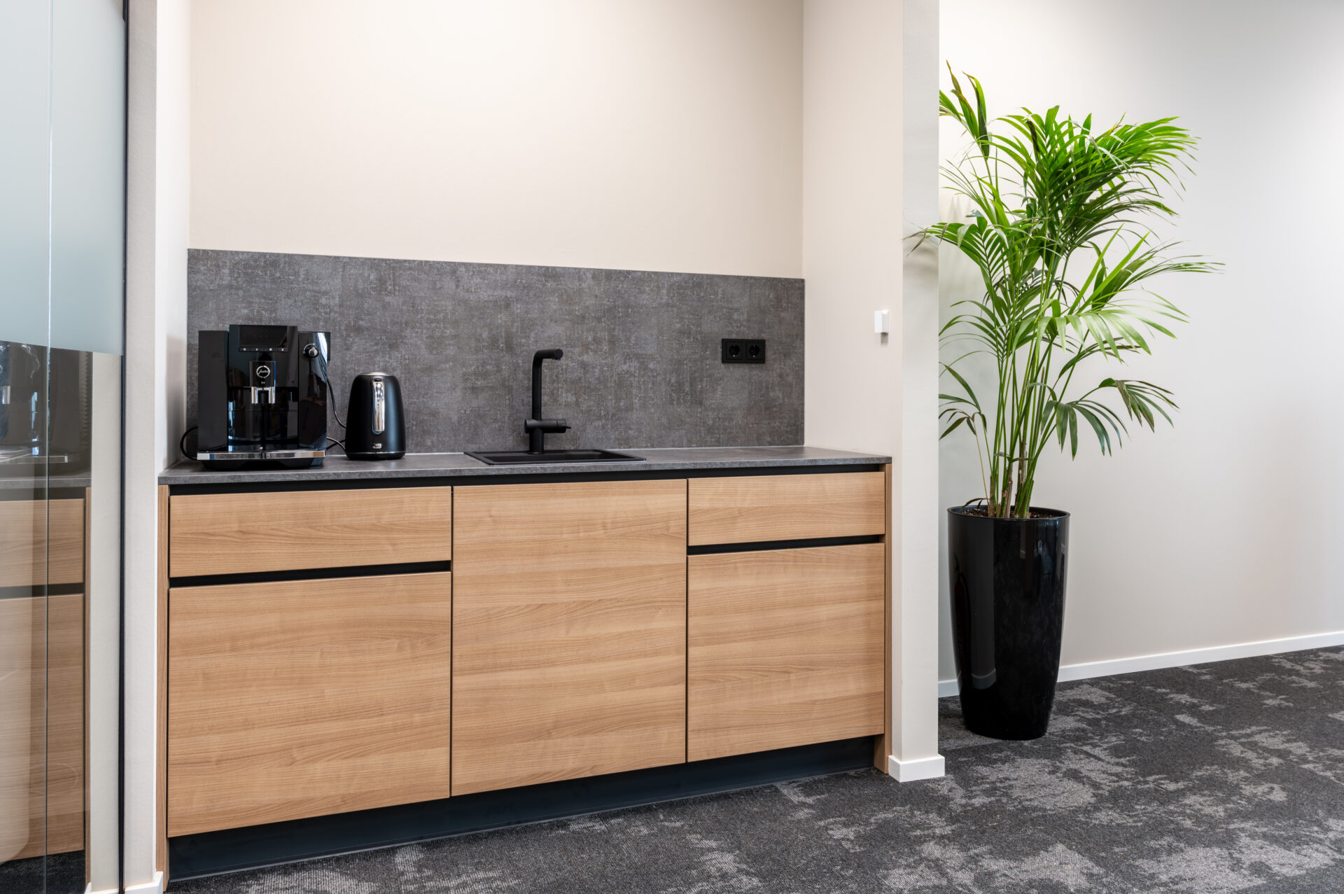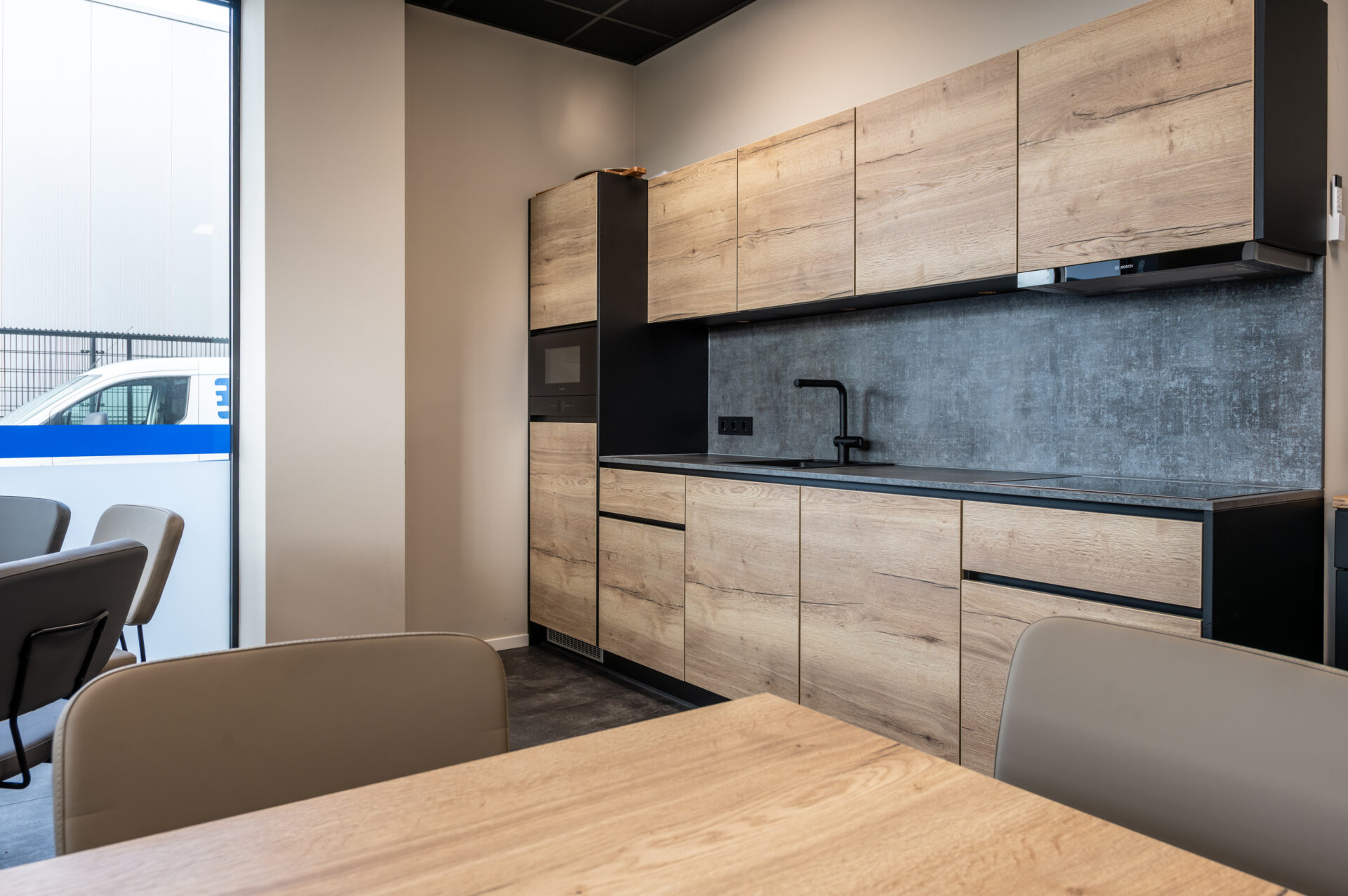 Binnen het nieuwe pand hebben wij gezorgd voor een inrichting die perfect aansluit bij deze praktische en professionele manier van werken. De sfeervolle kantine met functionele keuken vormt het hart van het gebouw – een plek waar medewerkers samenkomen, ontspannen en verbinden. Daarnaast hebben wij de pantry, de representatieve balie en de vergaderruimte op de verdieping ingericht, waarbij uitstraling en functionaliteit hand in hand gaan.