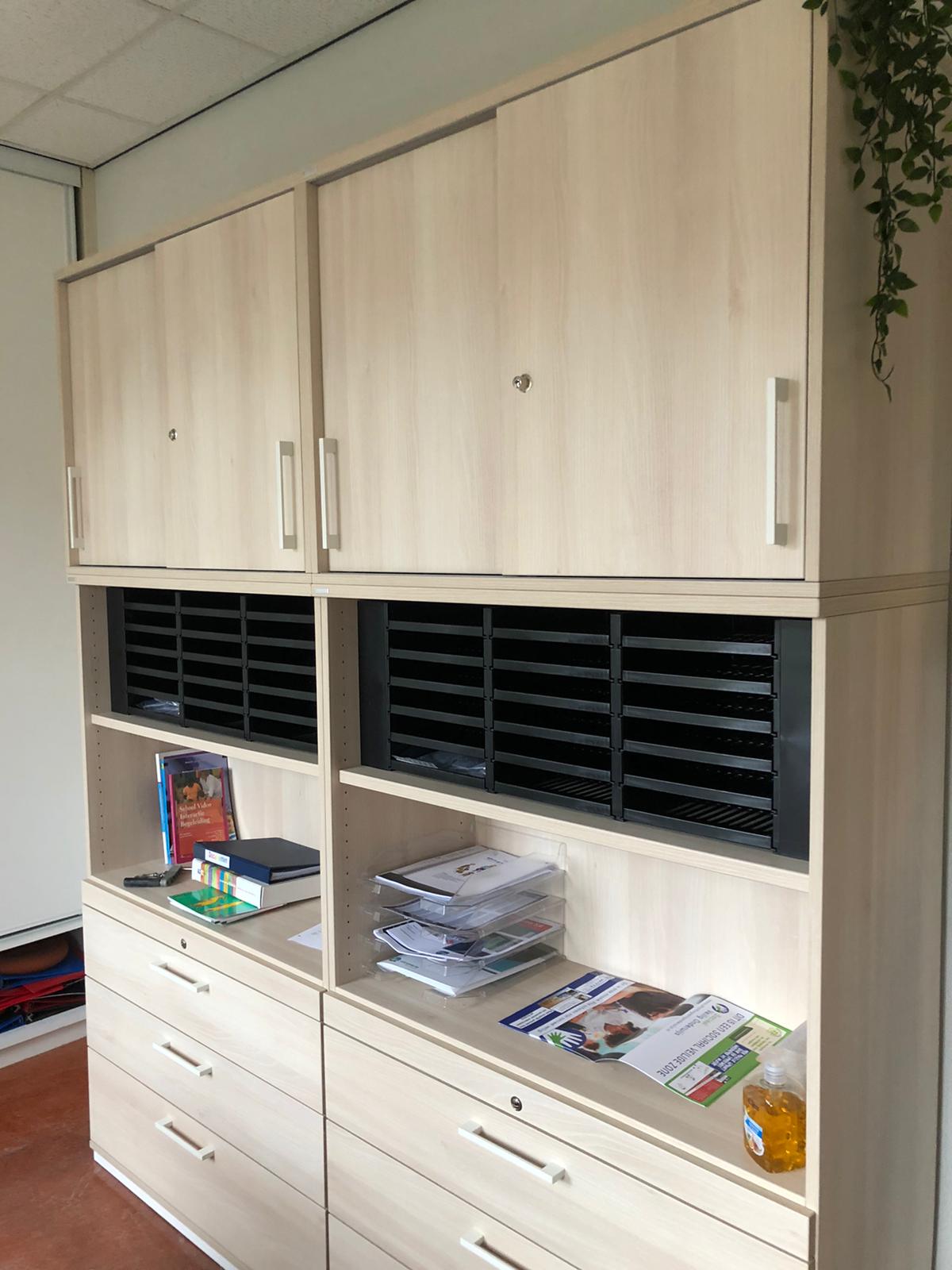 Zo hebben wij onder andere de teamkamer en het directiekantoor van de Ireneschool Ermelo ingericht, waar rust, overzicht en een professionele uitstraling centraal staan. In de aula van de Beatrixschool Ermelo is een praktische en sfeervolle ruimte gecreëerd die geschikt is voor zowel gezamenlijke momenten als dagelijks gebruik. Ook de teamkamers van de Margrietschool Ermelo en de Koningin Julianaschool Ermelo zijn voorzien van nieuw, comfortabel meubilair dat bijdraagt aan een prettige werksfeer voor het onderwijsteam.
